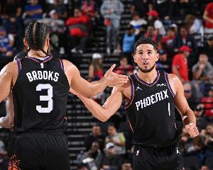 布克出战29分钟,投篮22中12,三分球10中3,罚球6中6,轰下33分5篮板7助攻的数据。