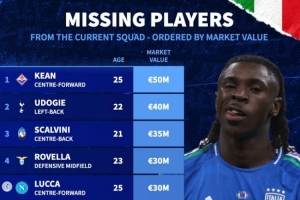 缺席本期意大利队球员身价榜:
