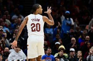本场比赛,骑士球员泰森表现出色,进攻端十分高效篮板也上双,在31分钟的时间里,投篮13中10,三分球5中4,罚球3中3,砍下27分11篮板4助攻1抢断的数据,正负值+23。