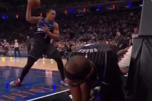 体育资讯12月09日讯 尼克斯106-100主场战胜魔术的比赛中,贝恩曾在一次快攻中,拿球怒砸OG,最终吃到技犯。