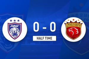 上半场比赛结束,上海海港0-0柔佛新山。