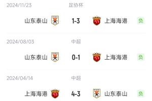 山东泰山暂积44分排名中超第5位,上海海港目前积60分排在中超榜首位置,领先身后的蓉城2分。
