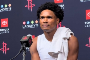 谈到快船老将哈登和莱昂纳德,阿门说:“在篮球场上,我想要亲自对阵每一支球队的最佳球员。我想与他们交手,以此来证明自己。这些都是我从小看着长大的球员,但现在我必须把这种情感放在一边,不再去想这些,而是要意识到他们是我的竞争对手,我必须全力以赴。”