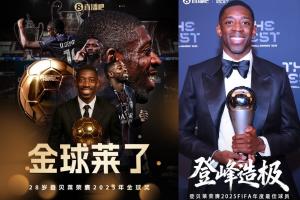 体育资讯12月17日讯 登贝莱荣膺2025FIFA年度最佳球员,包揽2025金球奖和2025FIFA最佳两项大奖。