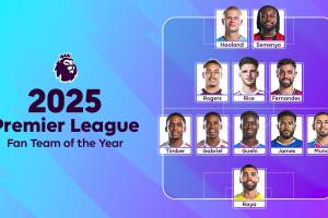英超球迷票选2025最佳阵:哈兰德领衔,B费、赖斯、詹姆斯在列
