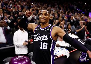 本场比赛,国王球星威斯布鲁克出战37分28秒,17中10,其中三分6中3,罚球4中4,得到26分12篮板6助攻2抢断,正负值-5。