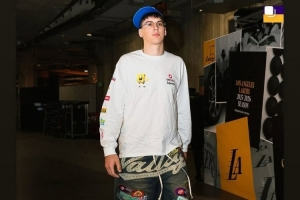 赛后,湖人球员拉拉维亚兴致不错,他晒出湖人赢球海报、东契奇的个人海报和自己的入场照。