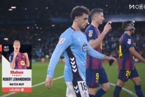 西甲官方也在赛后宣布,莱万被评选为本场比赛的MVP。